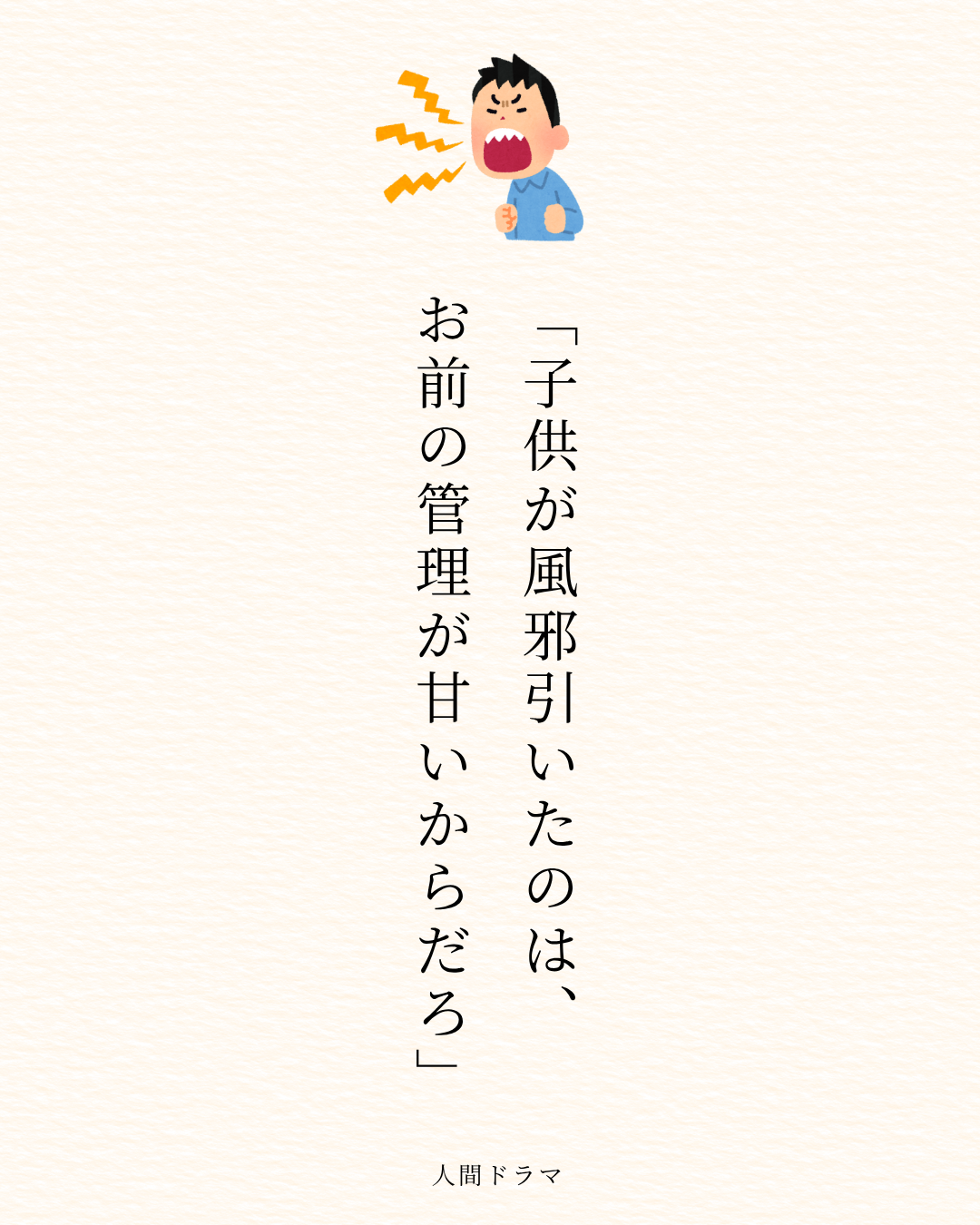 「子供が風邪引いたのは、お前の管理が甘いからだろ」