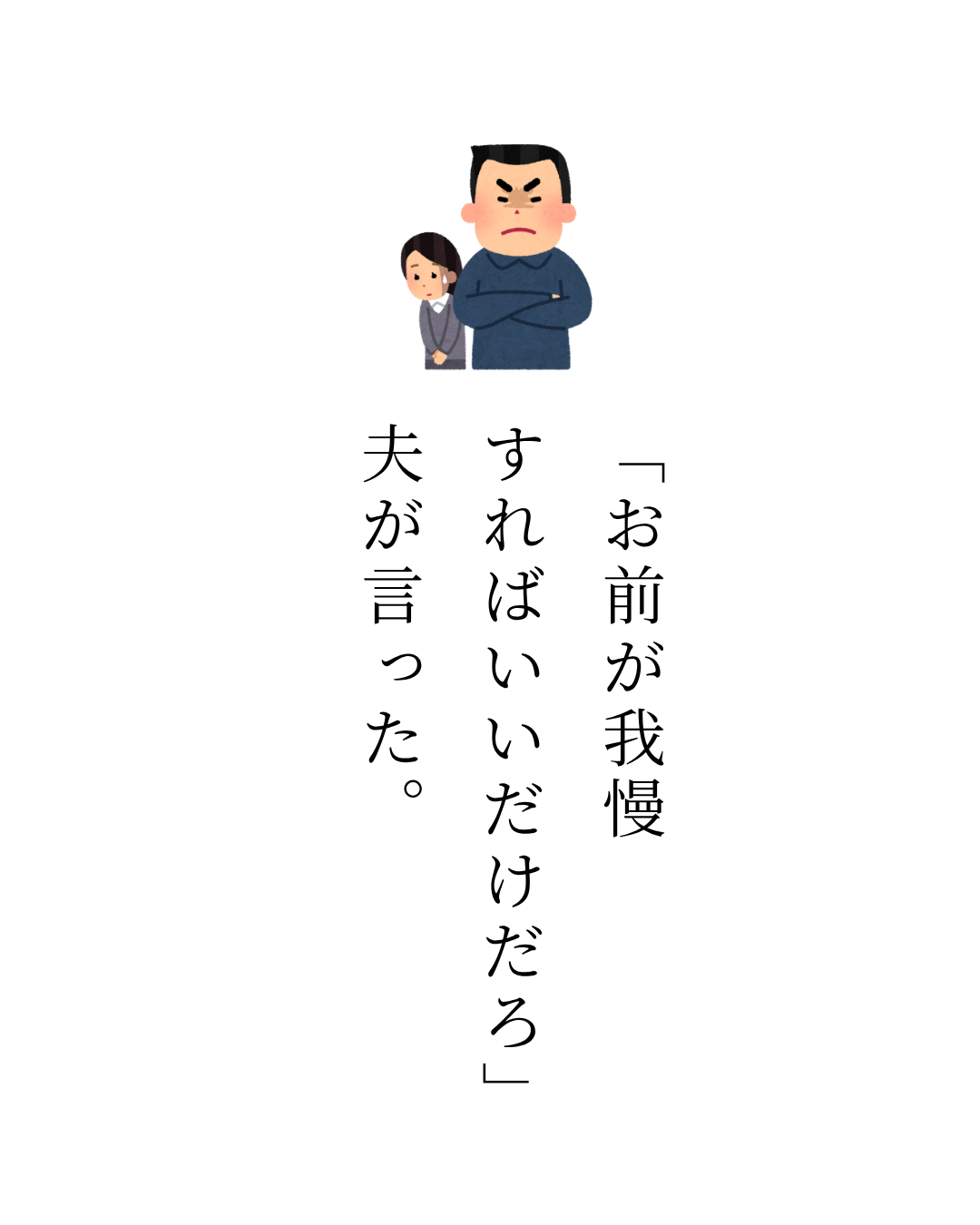 「うちの夫は、私が風邪の時は一週間家事全部やってくれましたよ。それが普通です」