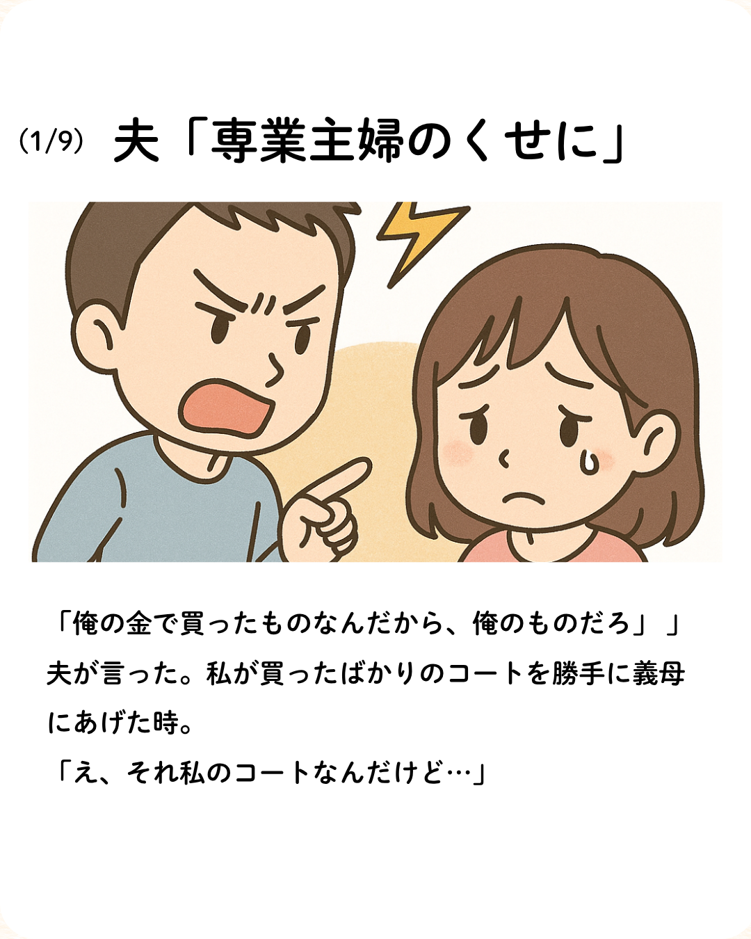 「でも私が選んで…」 「専業主婦のくせに権利主張すんな」