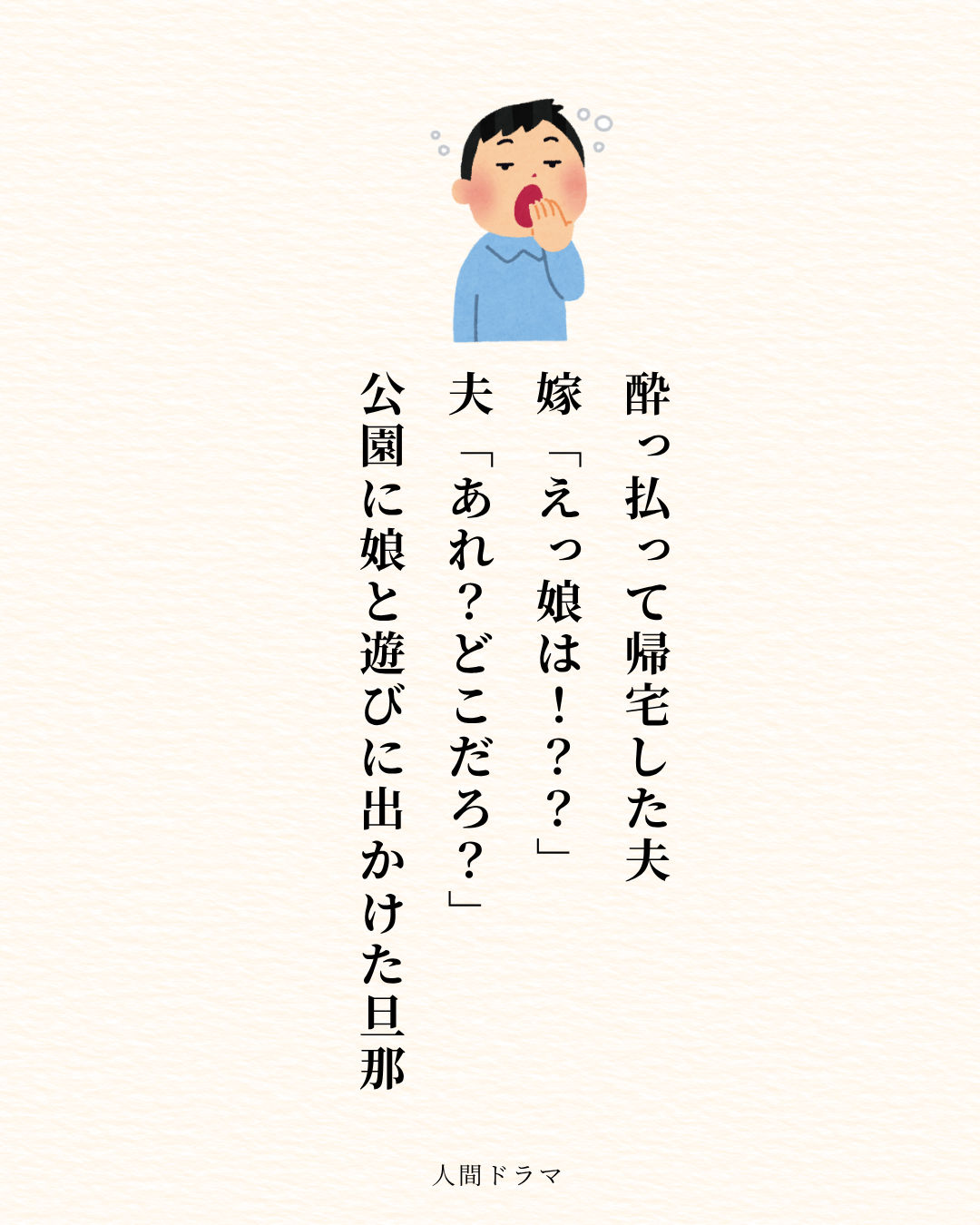 「え、いつもの…あれ、どこだっけ」夫は酔った目で宙を見ていた。