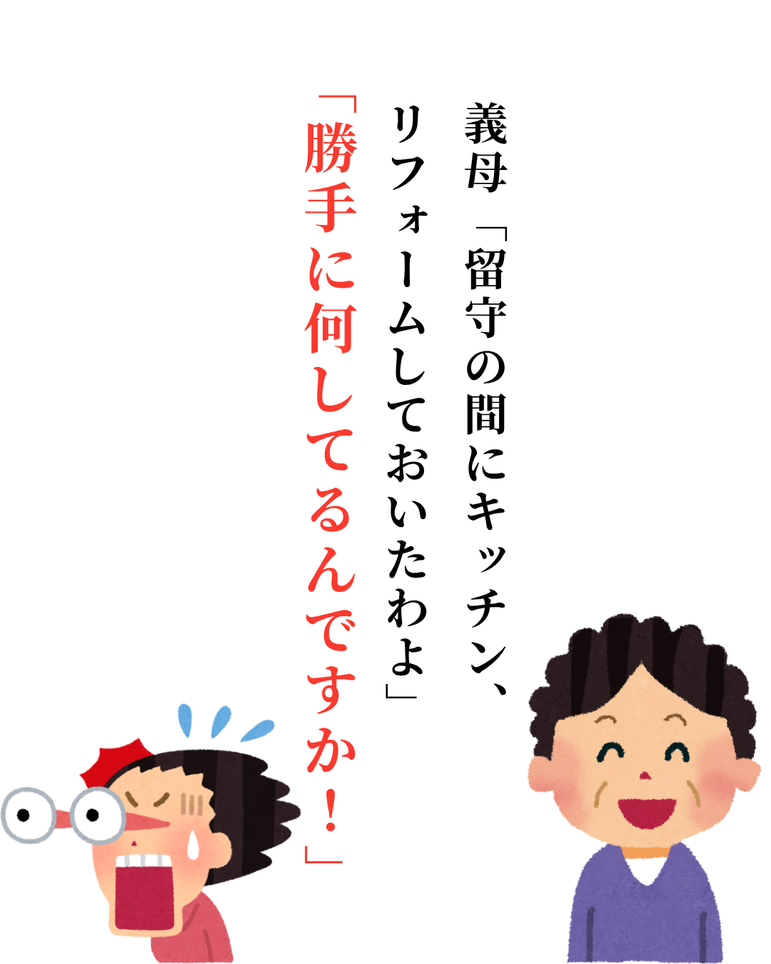 「ちょっと、勝手にリフォームされたんだけど」 「母さんがやってくれたんだろ?良かったじゃん」 「200万円の請求が来てるんだけど」