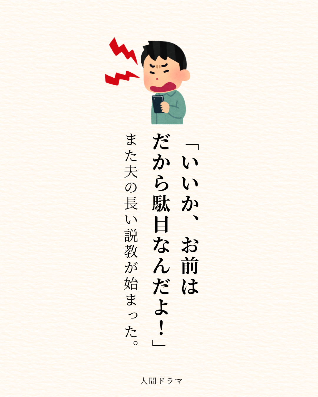 「お前は注意力が足りない」 「前から言ってるよな」 「この前も洗濯物を干し忘れて…」