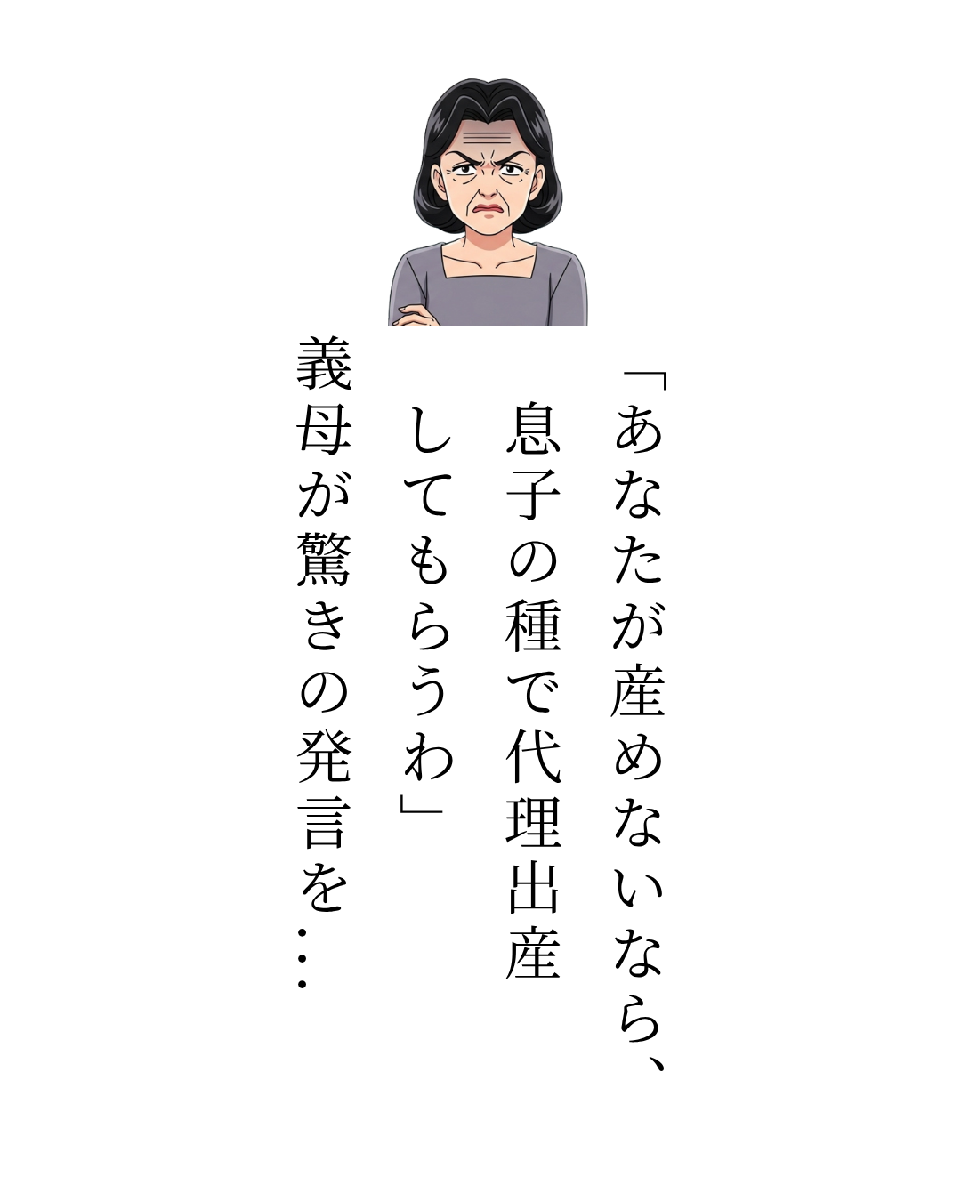「だって時間がないでしょ?あなたの卵子じゃなくてもいいのよ。とにかく孫が欲しいの。息子の遺伝子さえあれば」