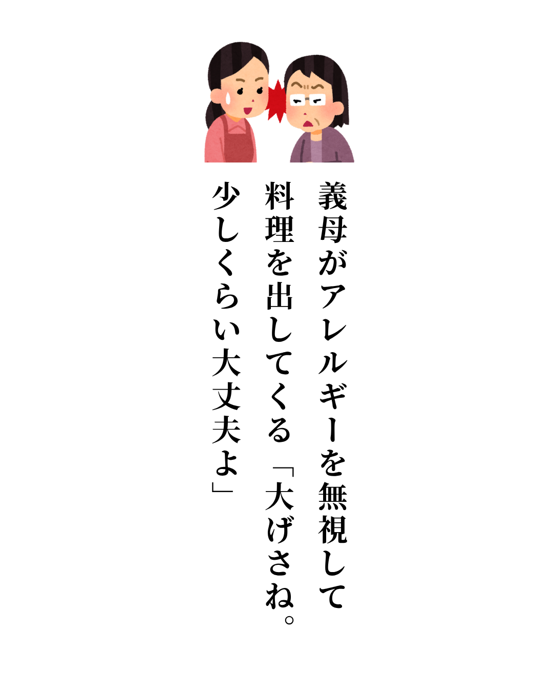 理由は、義母が私のアレルギーを全く理解してくれないから。