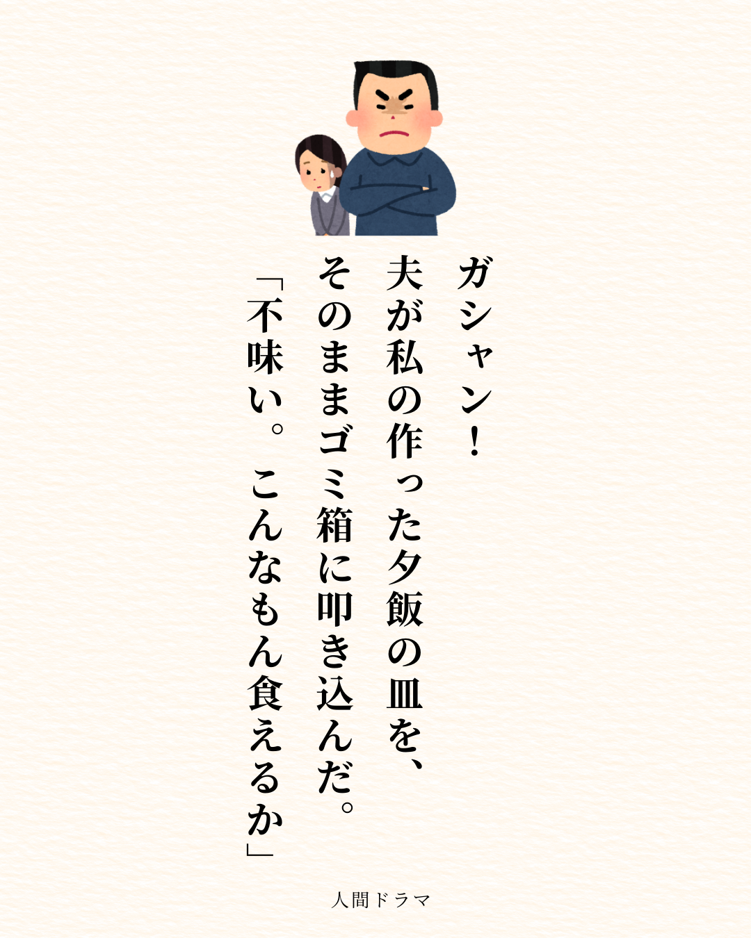 夫が私の作った夕飯の皿を、そのままゴミ箱に叩き込んだ。