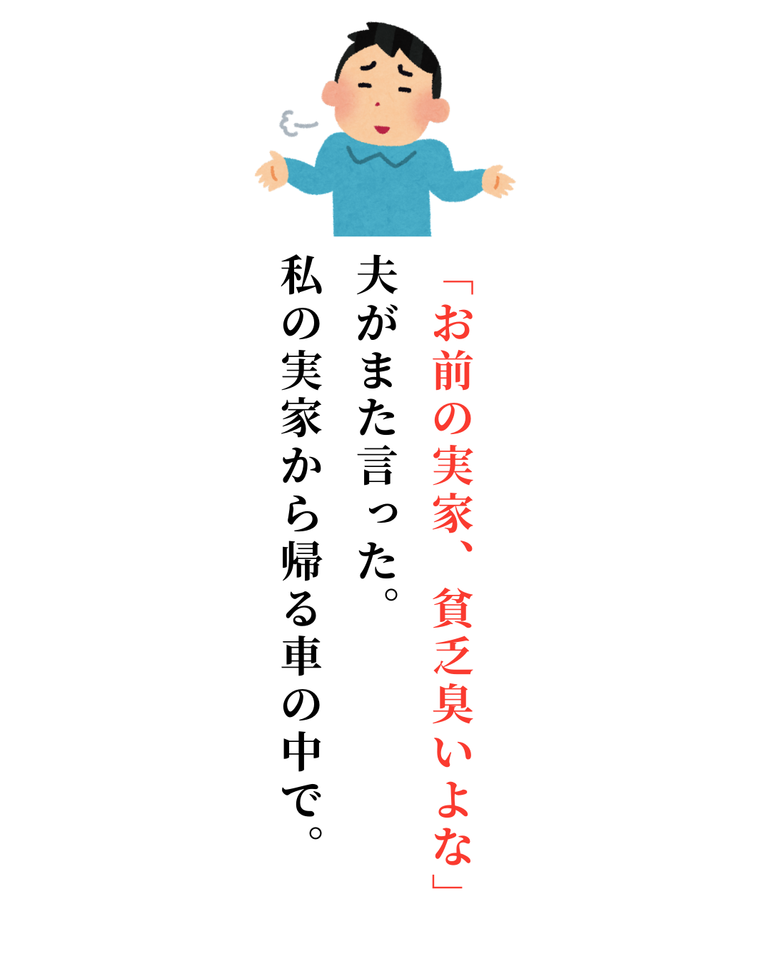 私の実家に行くたびに、「狭い家だな」「ボロいな」「この地域、治安悪そう」と文句を言う。