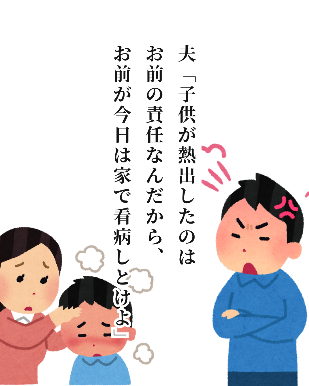 「子供が熱出したのはお前の責任なんだから、お前が今日は家で看病しとけよ」