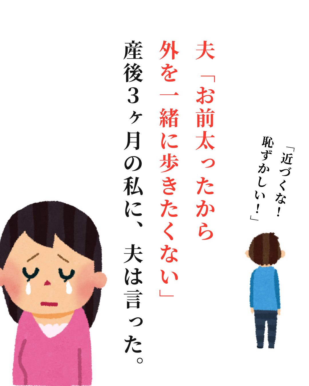 確かに産前より10kg体重が増えている。でも、まだ産後3ヶ月。授乳もしているし、睡眠時間は1日3時間。育児で精一杯で、自分のことなんて構えない。