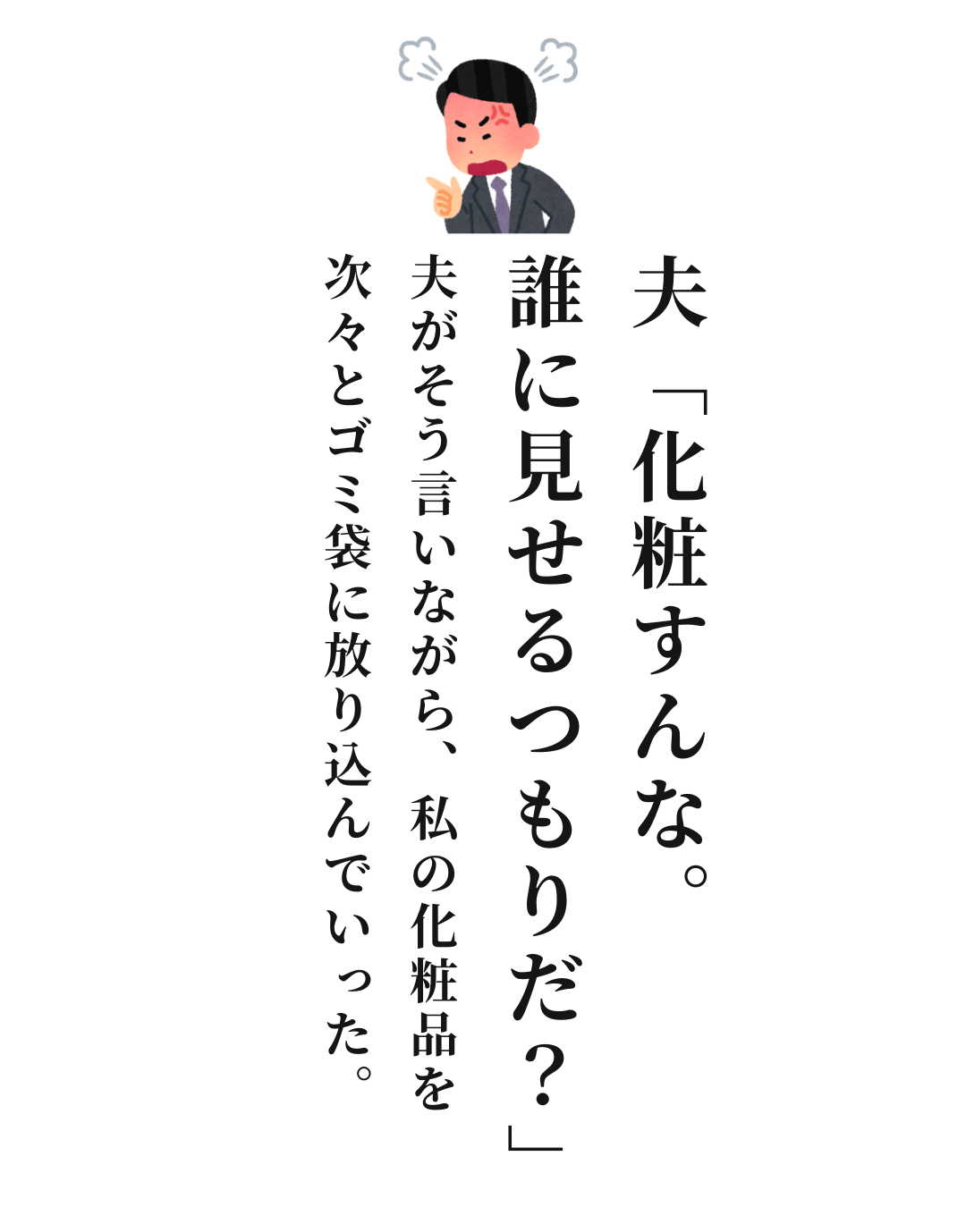 夫はそう言って、デパコスの口紅も、プレゼントでもらったアイシャドウも、全部ゴミ袋に入れた。