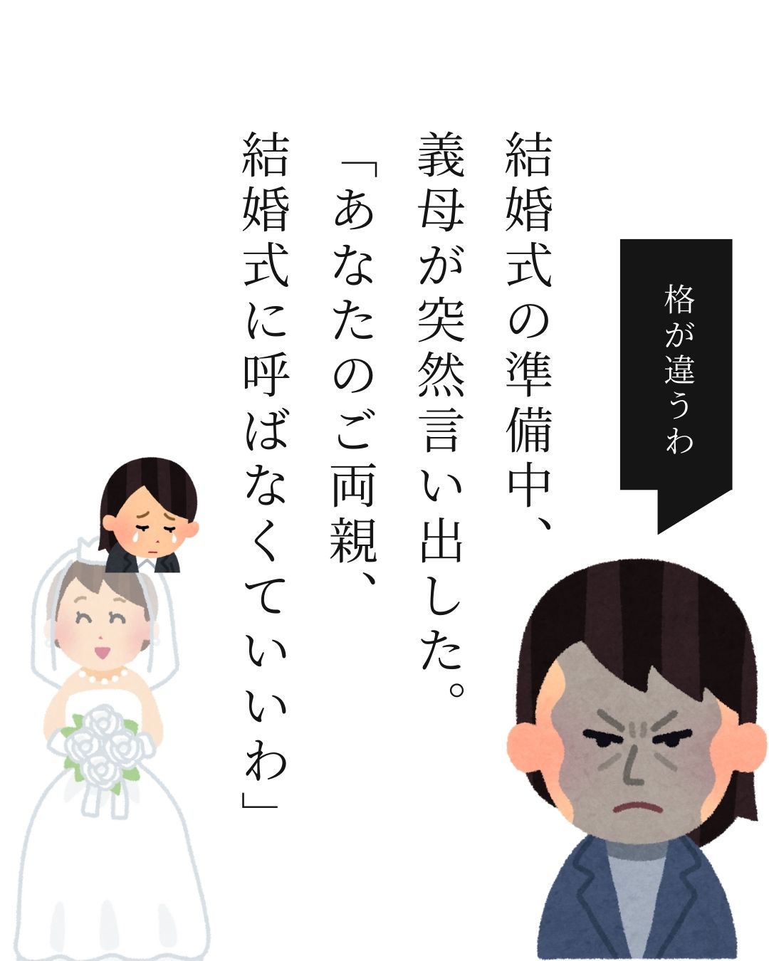「あなたのご両親、結婚式に呼ばなくていいわ」