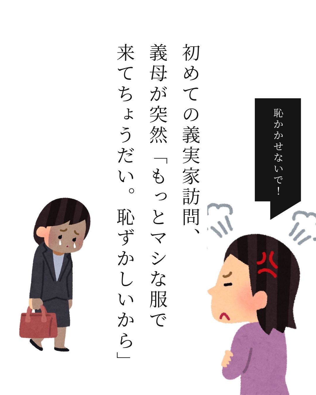 「あなた、今度うちに来る時は、もっと華やかな服を着てきなさいね」