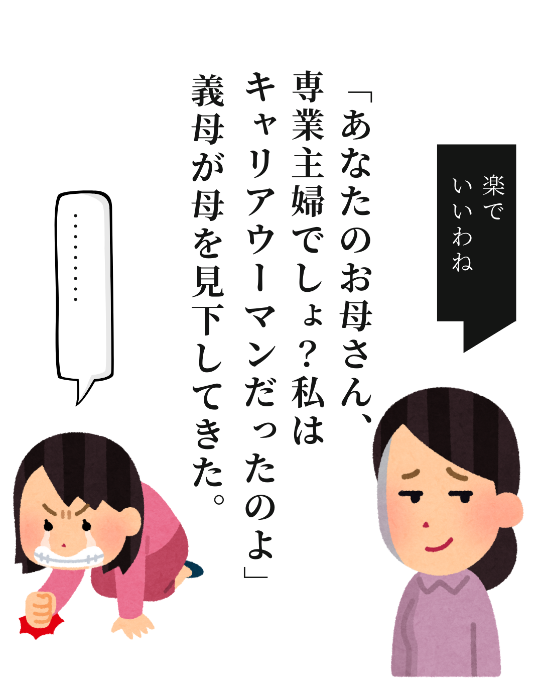 「専業主婦は楽でいいわね。社会経験もないし、ストレスもないでしょ?」