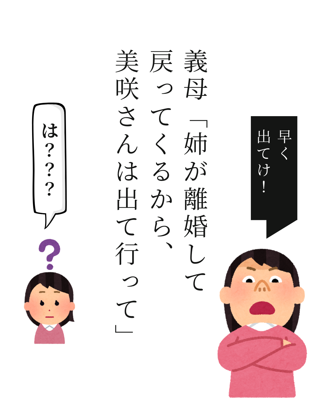 「姉が離婚して戻ってくるから、美咲さんは出て行って」