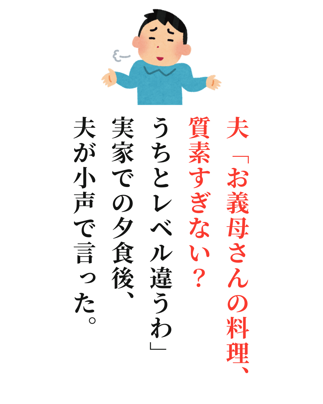 「お義母さんの料理、質素すぎない?うちとレベル違うわ」