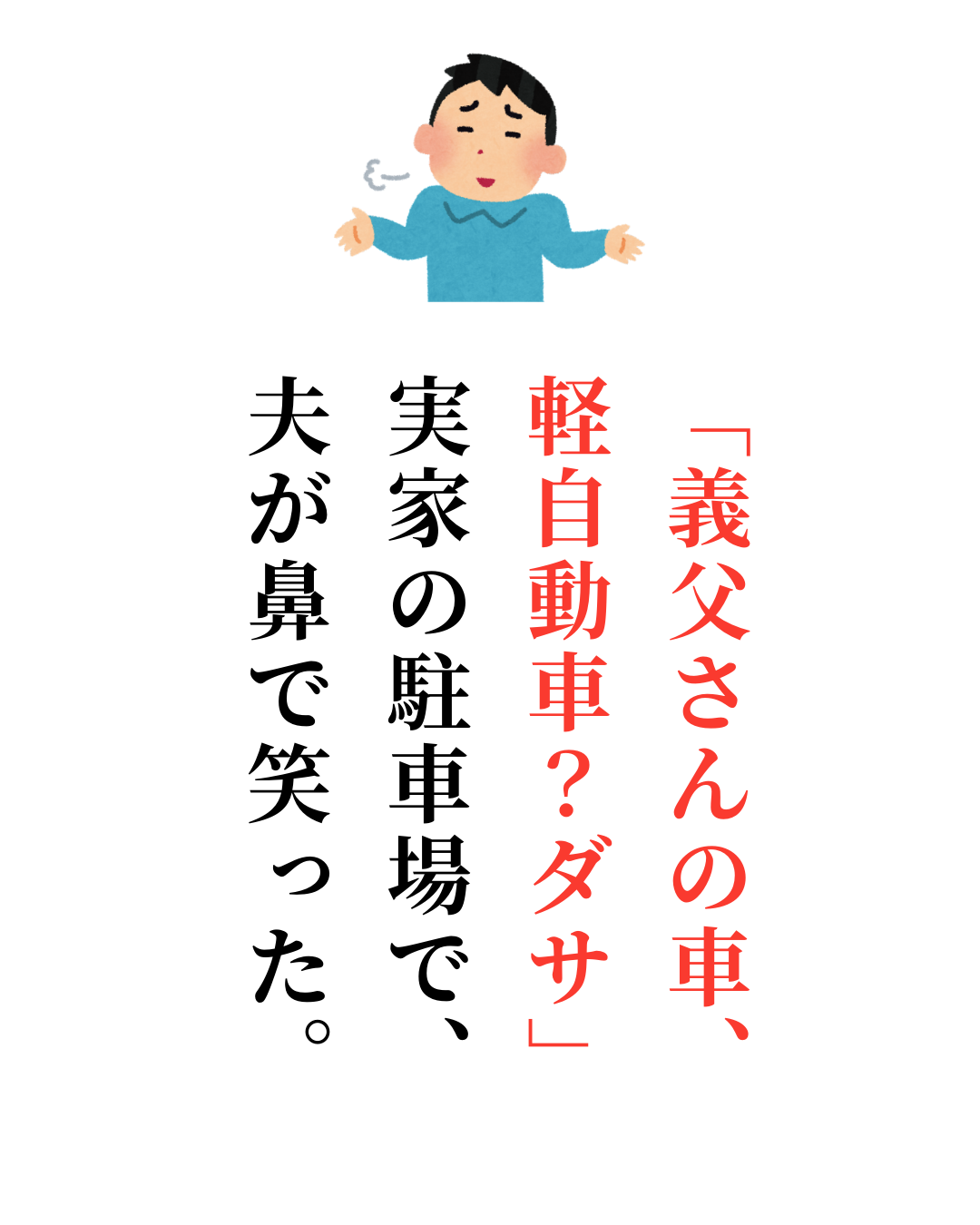 「義父さんの車、軽自動車?ダサ」